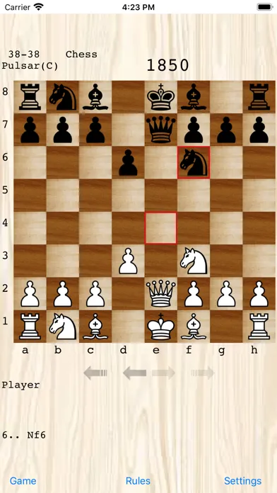The game button - configure game menu item, lets the user control the variant and difficulty. It defaults to Chess at Easy(lowest level) but remembers the current settings when the App restarts. There are choices of pieces and board color schemes. The Pulsar program was originally developed by me for computers starting in 1998 and came to mobile for the first time in 2014.