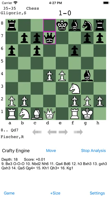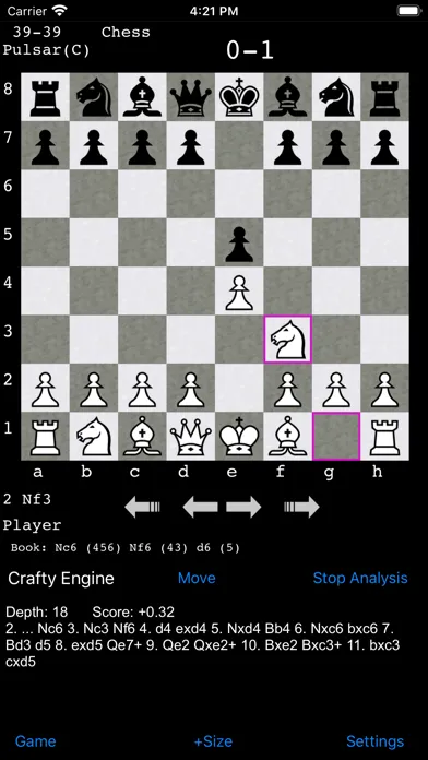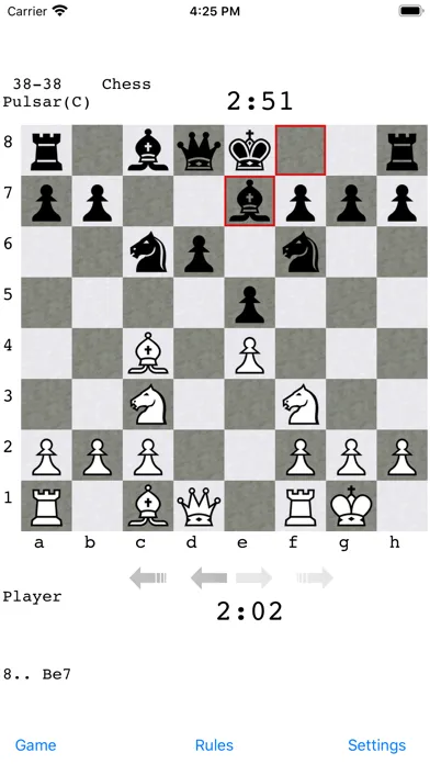 The Pulsar Chess Engine plays chess and six variants all with adjustable levels : Chess960, Crazyhouse, Losers, Atomic, Three Checks and Giveaway. Games played that have a result or resignation are logged and can be reviewed. There are additional game collections when users open their log file of classic and modern master games including Fischer, Carlsen and Morphy collections. If the game is a chess game or Chess960, Crafty engine analysis is available.