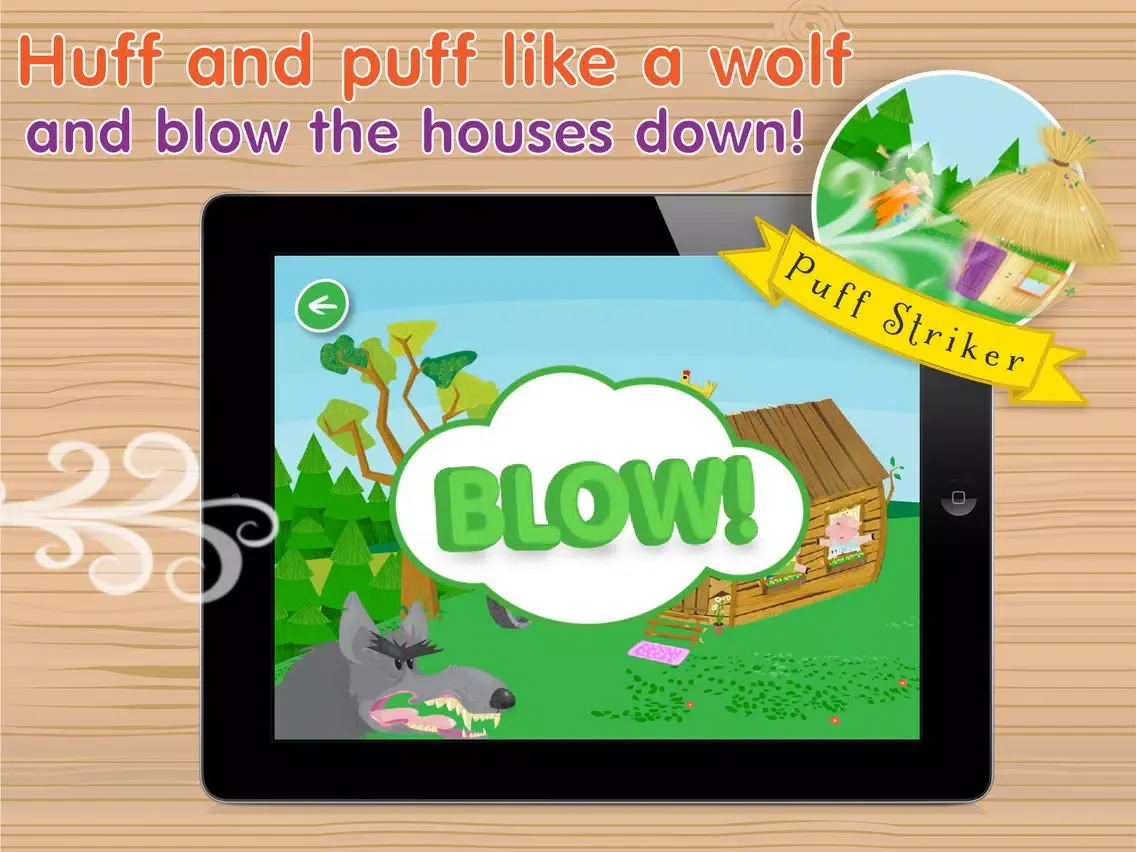 -House-blowing Puff Striker game that gives kids ultimate fun when they compete at huffing and puffing like a wolf!