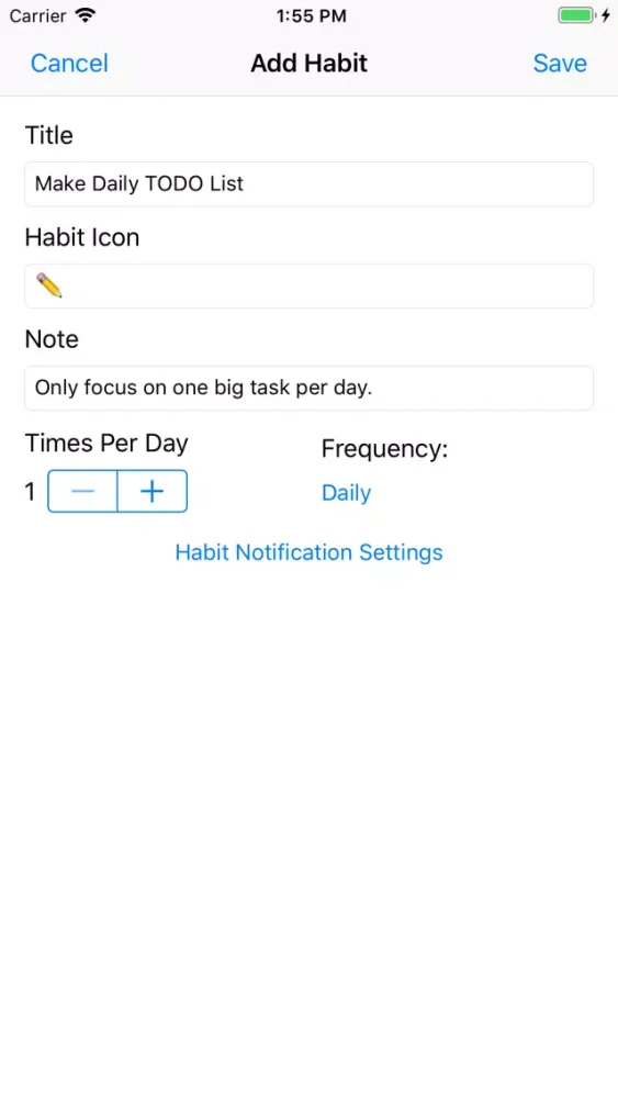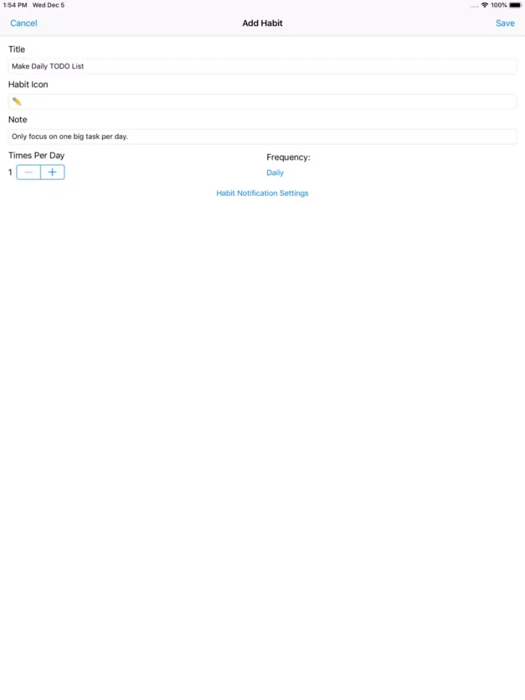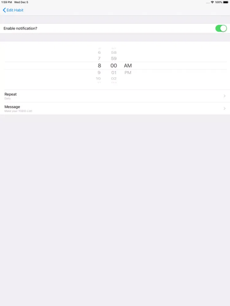 - Notifications can be delivered at any time of day to remind the user of all habits.