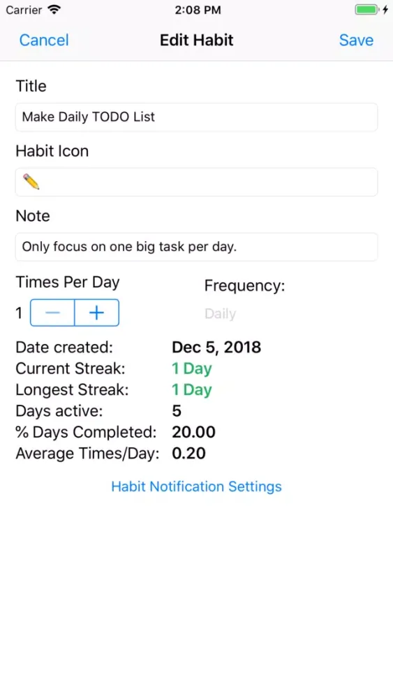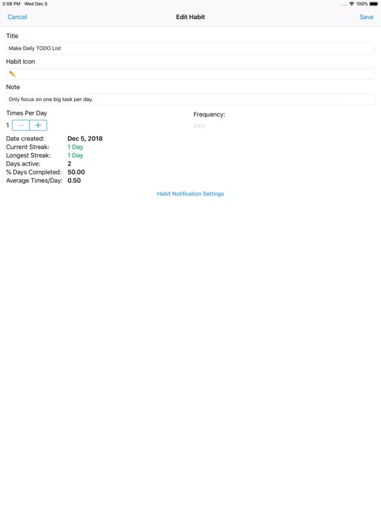 - Simple statistics about the habits can be viewed.