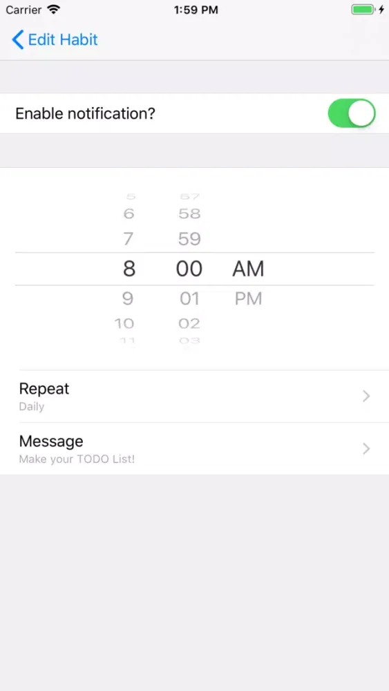 - Notifications can be delivered at any time of day for specific habits and reminders for them.