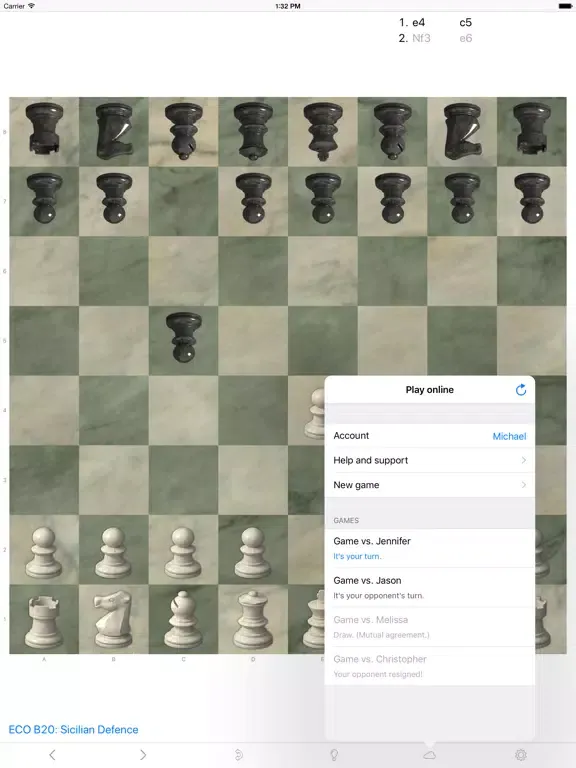 - 오프닝 라이브러리 기능으로 플레이하면서 체스 오프닝 이론을 보기