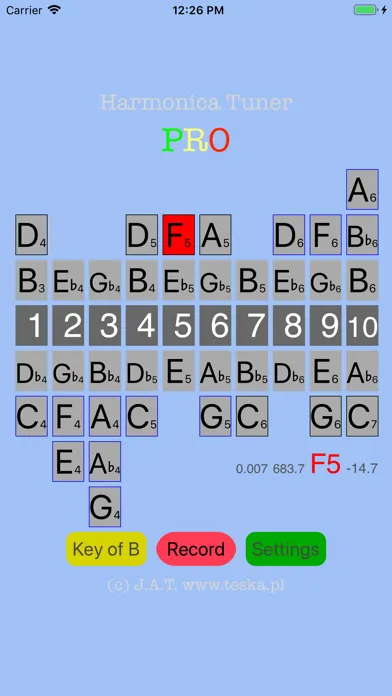 Application Harmonica Tuner PRO (@harmonicatuner) fills the gap in the App Store for tunning sounds for harmonica players. The application has precise, simple and fast algorithm. Harmos: Key of C, A, D, G, E, F, Bb, B, Eb and possibility to define new one.