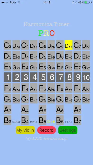 2. If the sound is harmonica's note, th en the note lights in yellow, red or green color. It depends on accuracy of the sound.