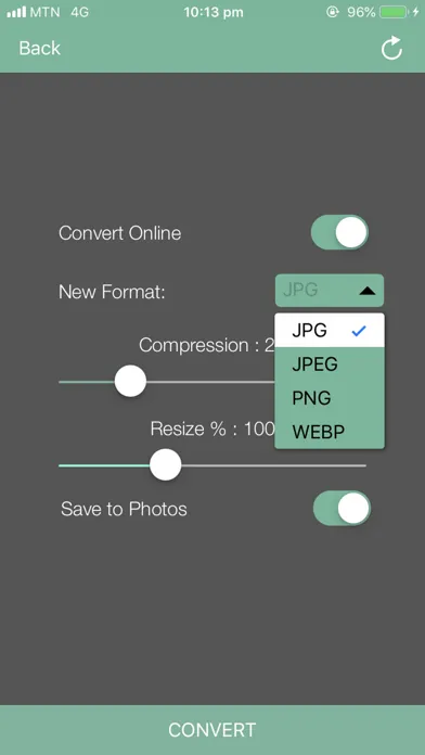 Download to convert BMP, GIF, JPEG, JPG, PNG, WEBP and all iOS Photos app supported formats like HEIC to: JPEG, PNG, WEBP