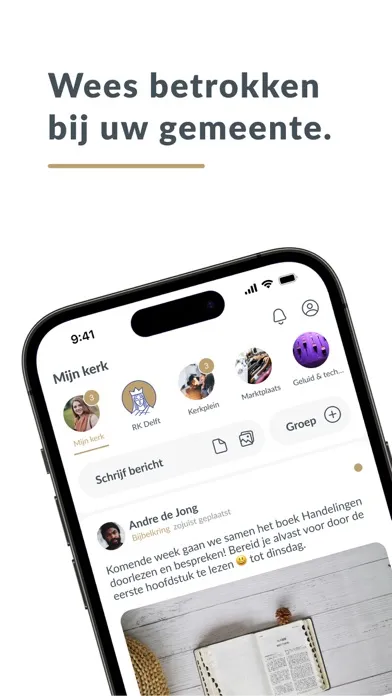 Dankzij onze unieke groepenstructuur helpen wij kerken beter te communiceren. Met de hele gemeenschap, maar ook onderling. U kunt zelf groepen toevoegen en mensen daarvoor uitnodigen. Een slimme timeline zorgt er voor dat iedere gebruiker persoonlijke en relevante informatie ziet.