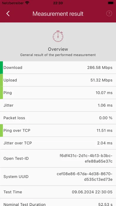 Uploading and downloading are measured, as are all the relevant parameters for monitoring network quality, such as latency, packet variance, jitter, packet loss etc. Furthermore, our Nettest processes all the important meta-information which describes the context of a measurement. Only by this means can measurement results be tested and validated thoroughly for significance and reliability.