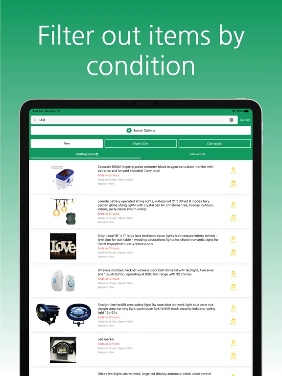 • Filter by condition, filter by New, Open Box, or Damaged.