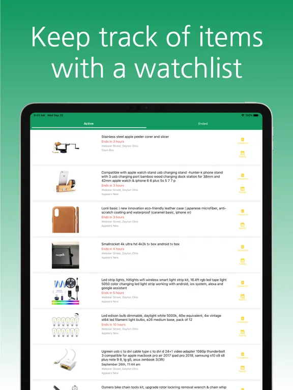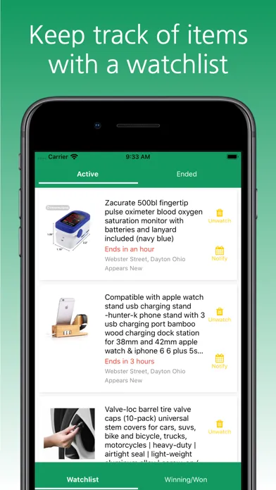 • Save items to the App Watchlist, and use the app watchlist to keep track of item's you're interested in.