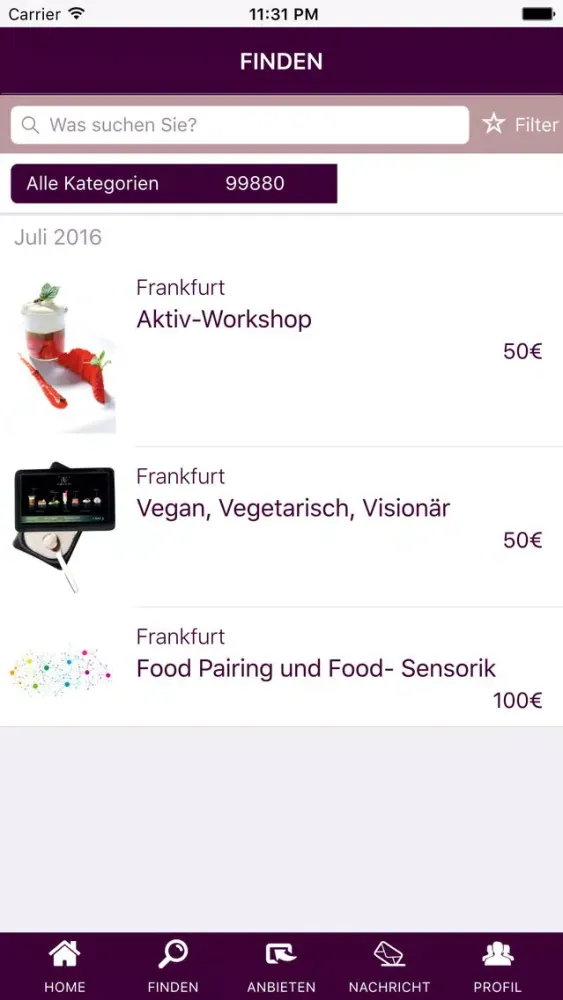 Bist Du auf der Suche nach einer Weiterbildung von Profis für Profis aus Küche und Gastronomie? Mit unserer App findest Du Seminarangebote in Deiner Nähe und in Deiner Fachrichtung. Einfach die passende Kategorie wählen, durchscrollen und direkt mit dem Anbieter Kontakt aufnehmen. Einfacher geht’s nicht mehr!