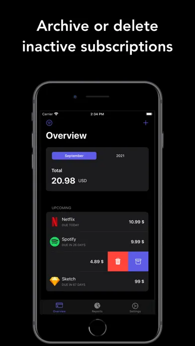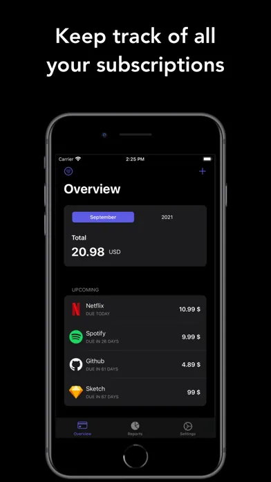 1. Gives you overview of your upcoming subscriptions, along with current month and current year costs