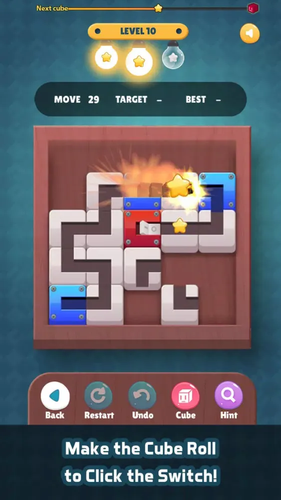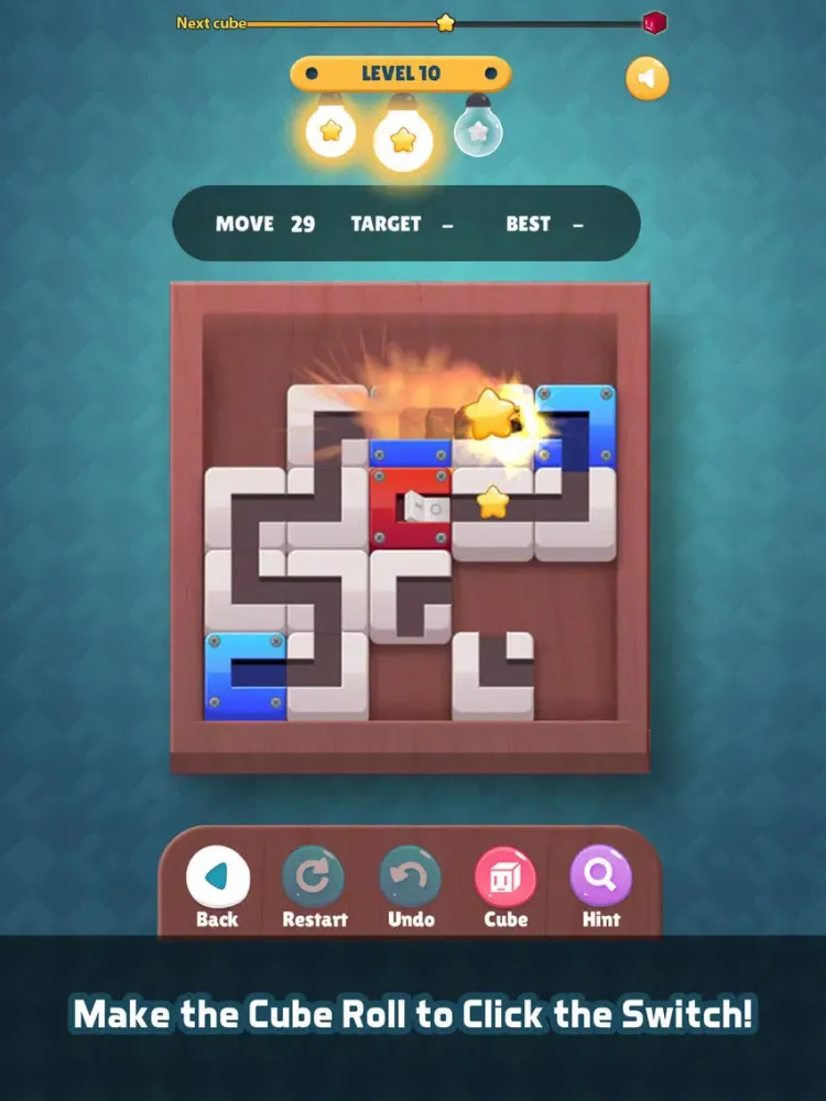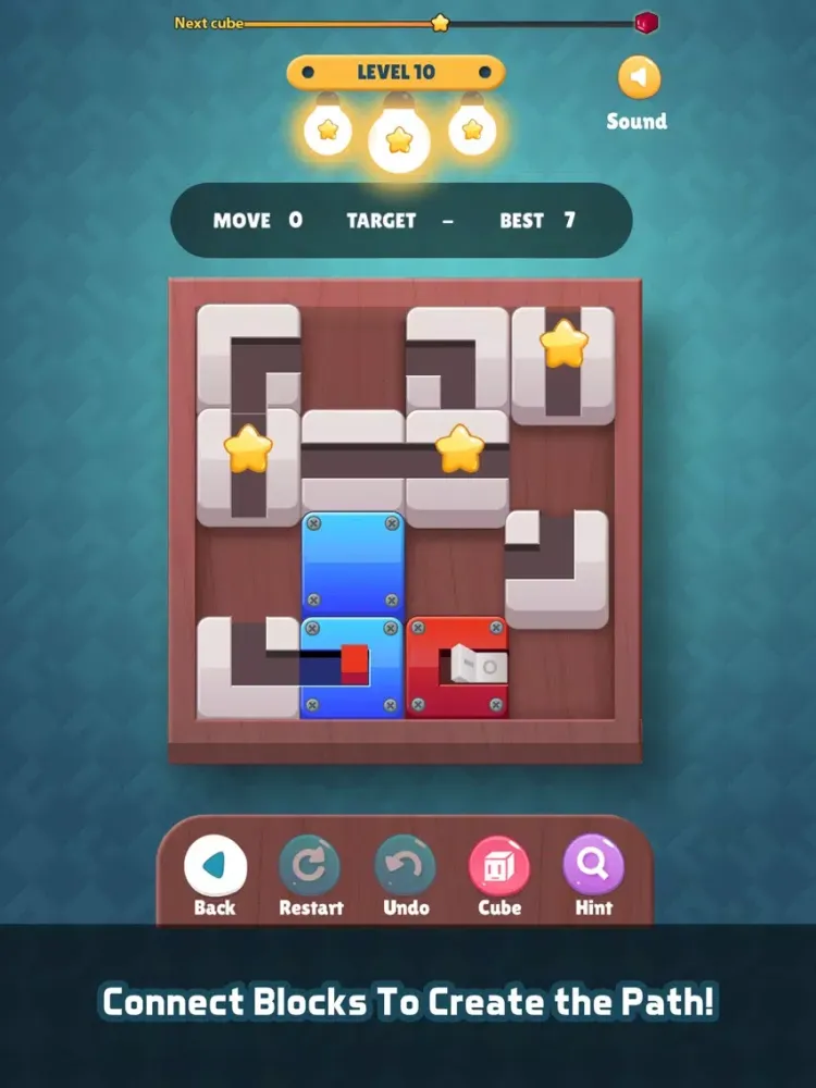 Let’s slide the puzzle to make the path for the cubes to pass though the light and switch on the bulb! your moves will be counted to determine how well you solve the puzzle.