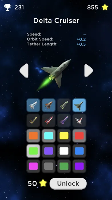 Tap and hold to latch onto planets, using their orbit to fling yourself further! Unlock new ships as you venture into space! Collect stars and go for a high score! How far can you go?