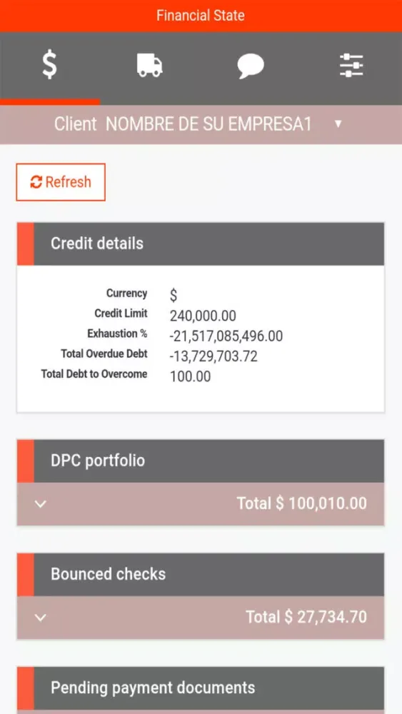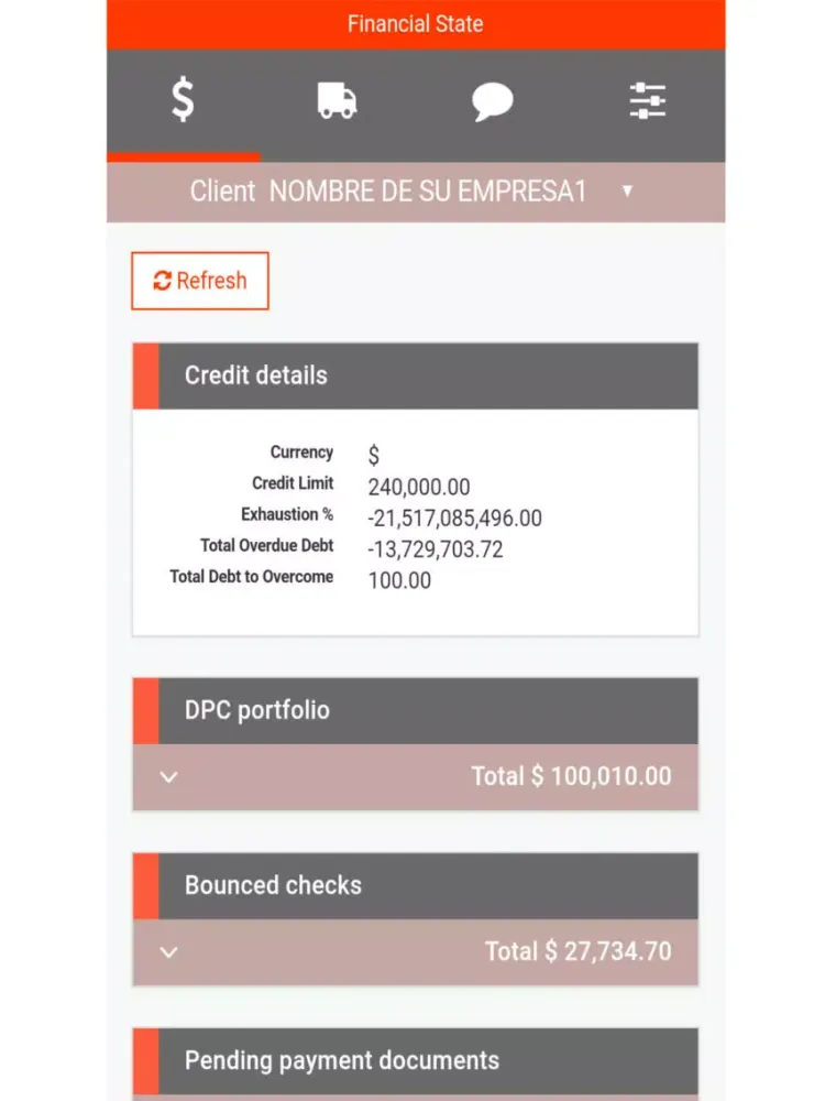 App para Clientes de Acindar Grupo Arcelor Mittal para consulta de su Situación Financiera, Pendiente de Despacho y Contactos.