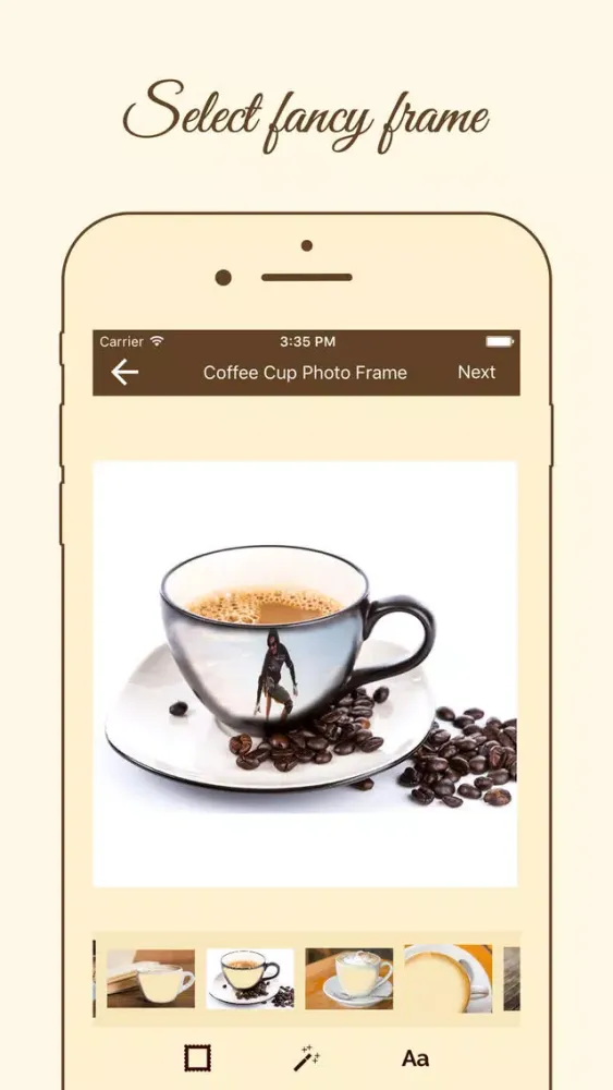 - Pick from varied collection of 100+ awesome coffee cup photo frames