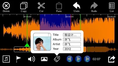 The app audio edit function contain audio trim, audio split, fadein / fadeout, setting audio volume, setting ID3 info and so on . The app is the most complete audio edit software .