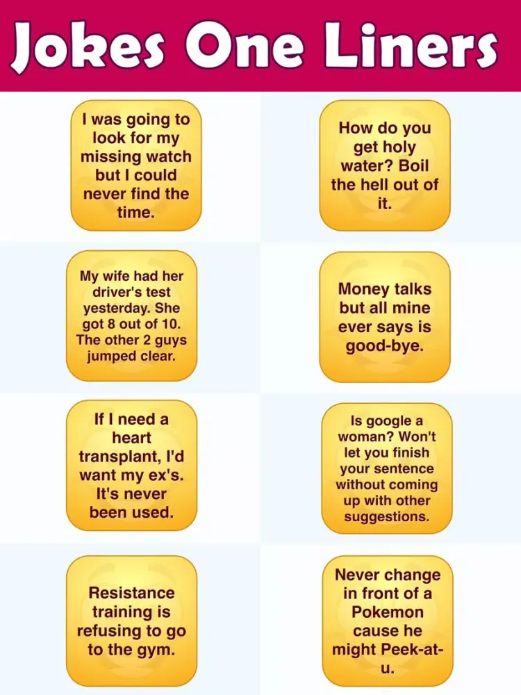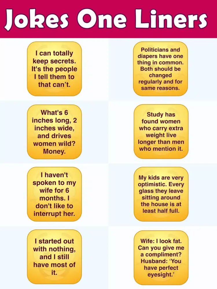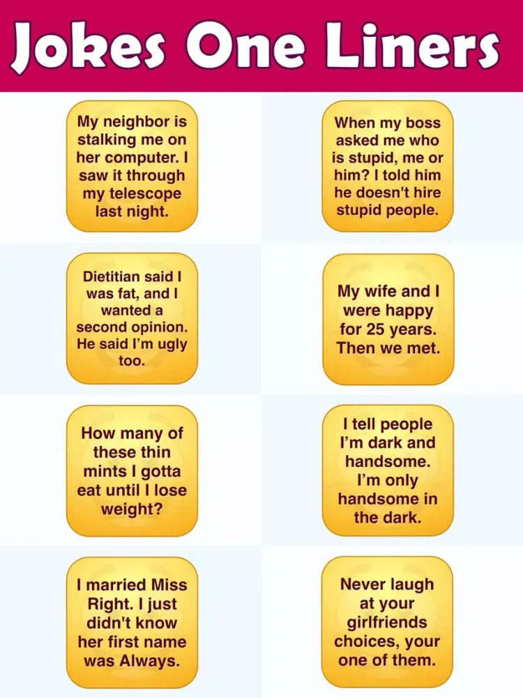 100 Stickers of funny one liner jokes - share a good laugh today.