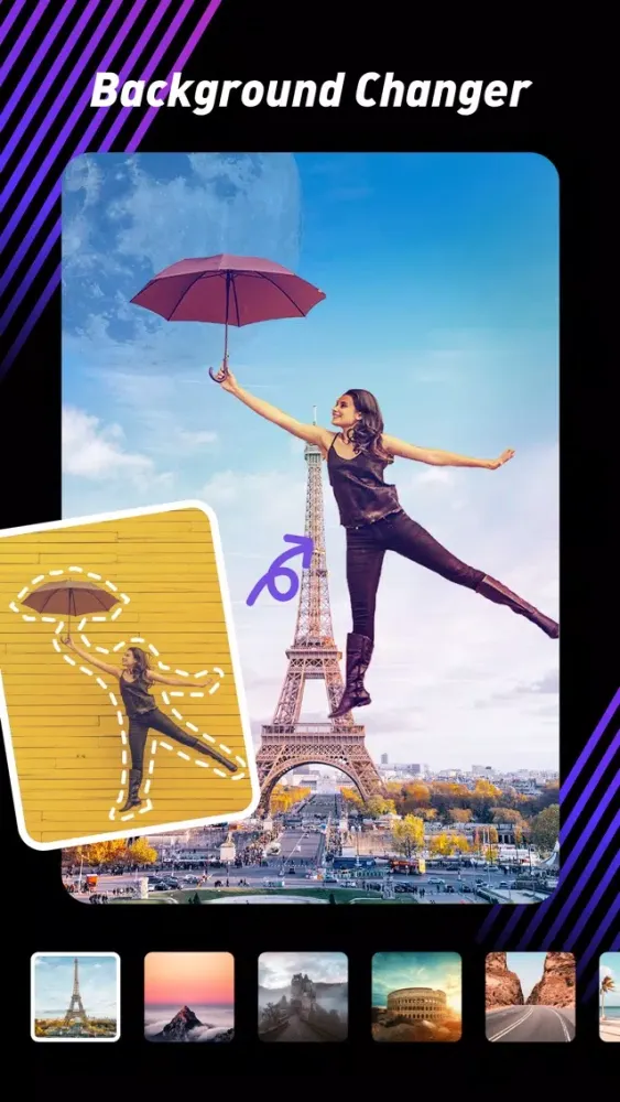 Do you think the photo background is dull? Do you want to show up in space or become a cover celebrity? Background Changer allows you to switch scenes at will so your photos will be no longer monotonous!