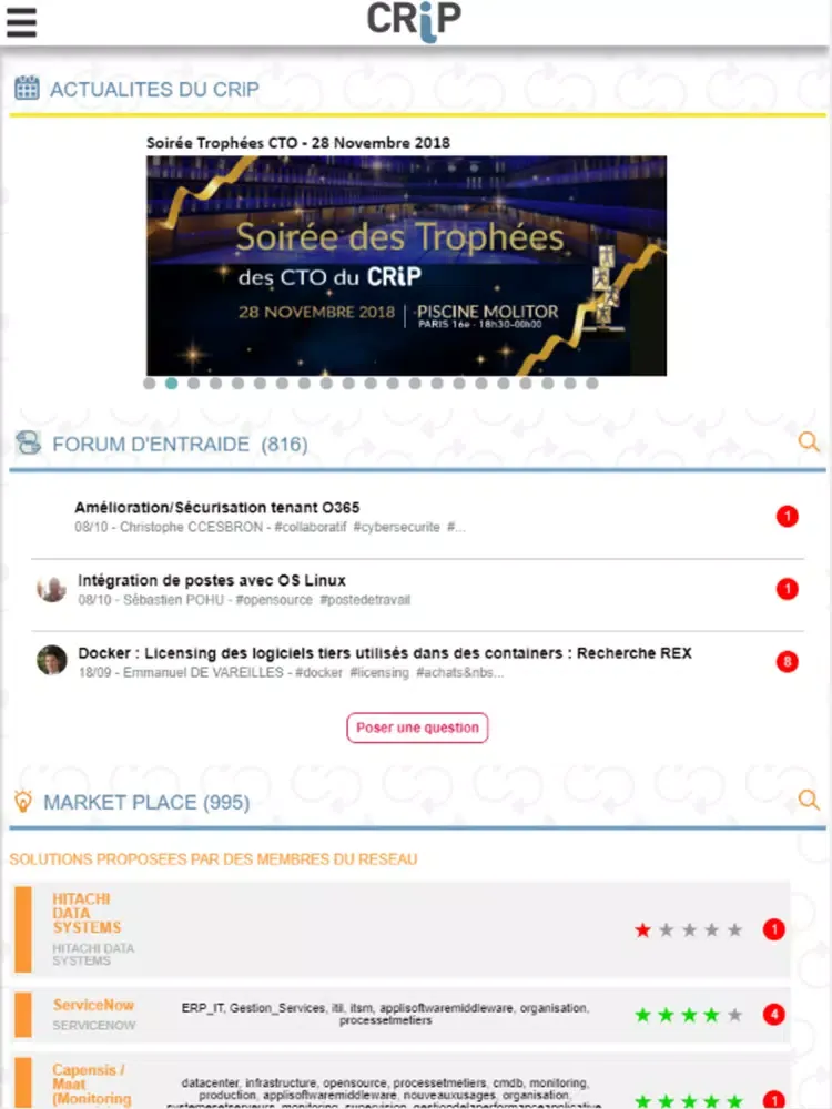 Une plate-forme de confiance réservée aux Responsables Infrastructure et Production IT, membres du CRiP !