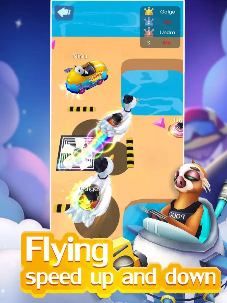 Simply use one finger to control your vehicle to bump other players off. Be THE LAST ONE left on the stage!
