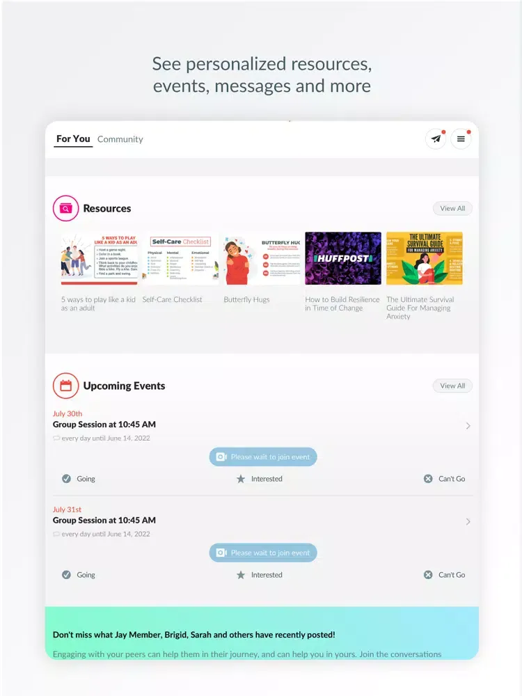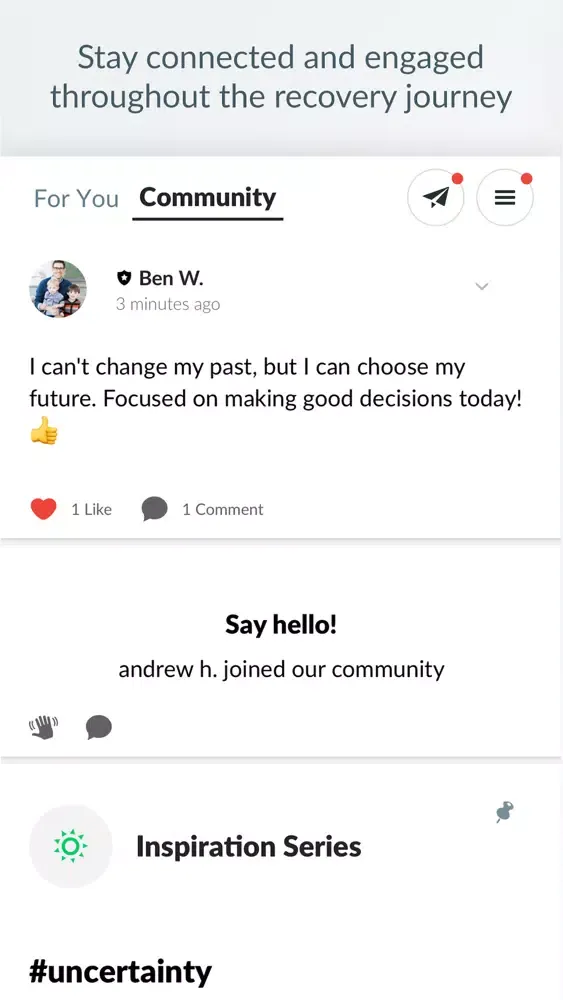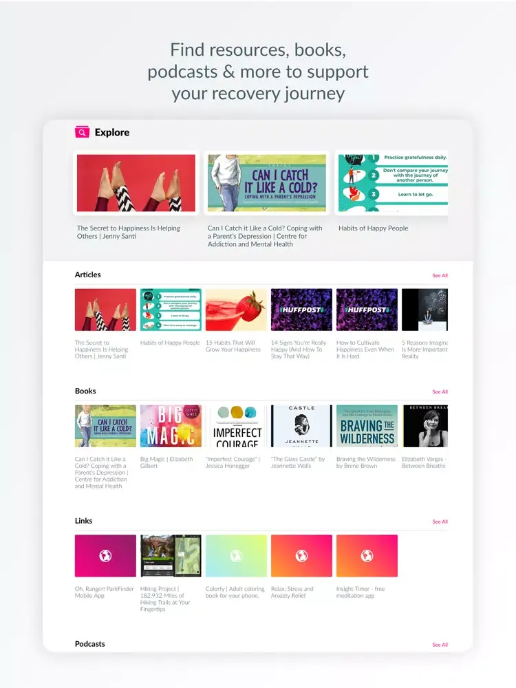 * Recovery Content: Explore videos, podcasts, and articles to help you as progress in your recovery.