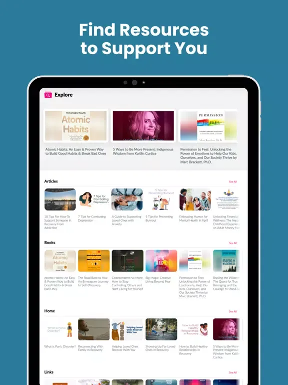 * Recovery Content: Explore videos, podcasts, and articles to help you as progress in your recovery.