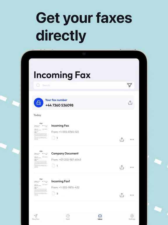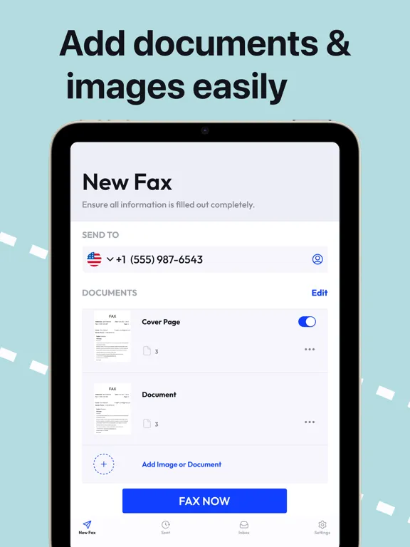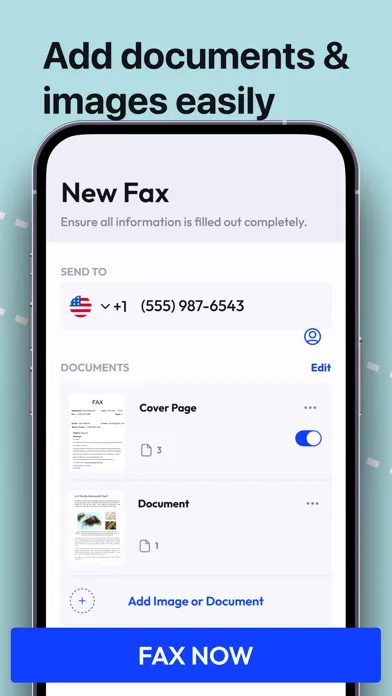 Turn your device into a fax machine! Scan docs with camera and send faxes worldwide.