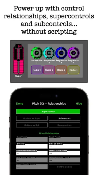 • Control all MIDI-enabled hardware and software: keyboards, synths, effects, pedals, DAWs, plug-ins, DJ, VJ & lighting rigs, other iOS apps, robots, cruise ships, rail guns, particle accelerators