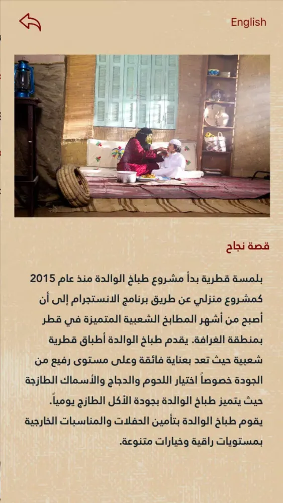 بلمسة قطرية بدأ مشروع طباخ الوالدة منذ عام 2015 كمشروع منزلي عن طريق برنامج الانستجرام إلى أن أصبح من أشهر المطابخ الشعبية المتميزة في قطر بمنطقة الغرافة. يقدم طباخ الوالدة أطباق قطرية شعبية حيث تعد بعناية فائقة وعلى مستوى رفيع من الجودة خصوصاً اختيار اللحوم والدجاج والأسماك الطازجة حيث يتميز طباخ الوالدة بجودة الأكل الطازج يومياً.