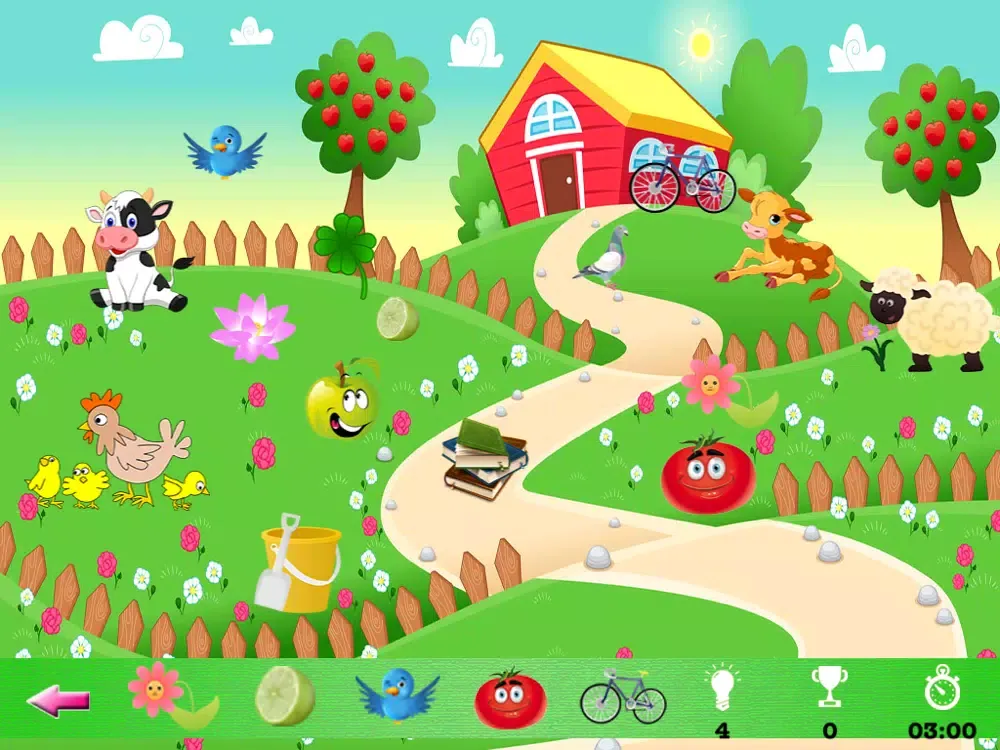 See images of objects and find them inside the puzzle. This game is great for younger children and encourages matching and fine-motor skills!