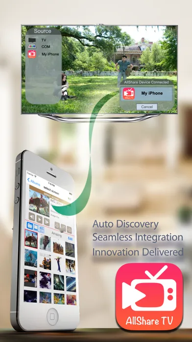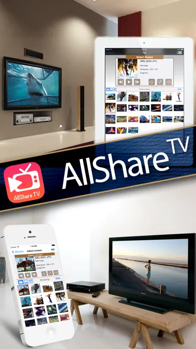 AllShare TV is UPNP/DLNA compatible media server application that let you stream photos and videos from your iPhone / iPad to TV, Gaming Consoles, Media Players and other DLNA devices. The AllShare TV seamlessly integrates into your home network and automatically discover TV and supported devices around you so you can share photos and stream videos on big screen.
