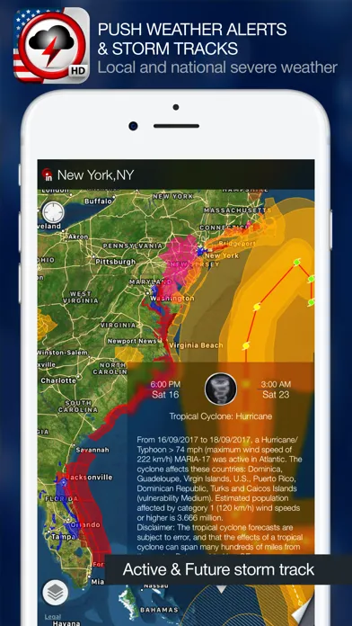 Weather Alert Map is the only app you need for the latest severe weather information. Get the latest Severe Weather Warnings, Watches, Advisories using instant PUSH technology, check radar images and storm tracks, view historical climate details so you’re always aware of weather on the way! Check LIVE storm track, future path and get critical weather alerts for your location in easy and intuitive way - directly on the map.