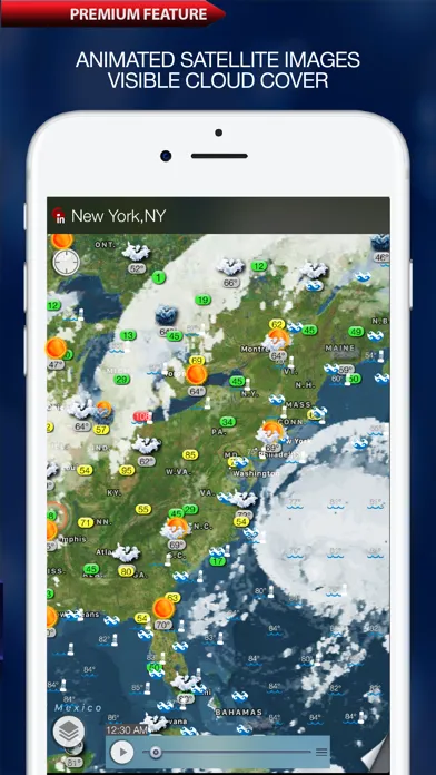 * Displays animated weather radar for your current location and lets you see past, present, and future radar images.