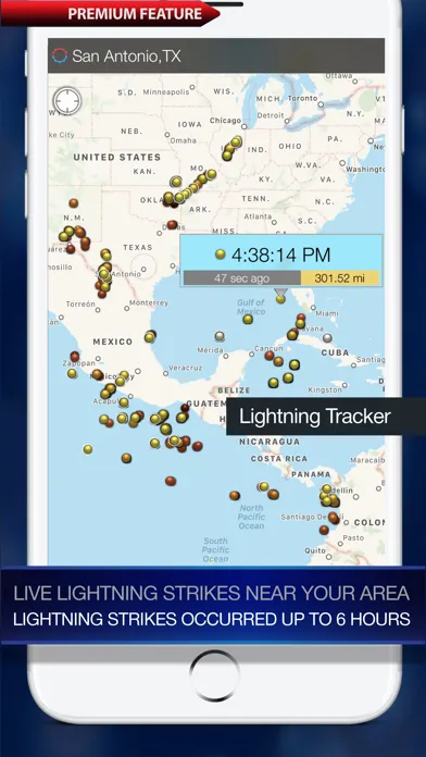 * Lightning tracker showing live and recent lightning strikes in your area.