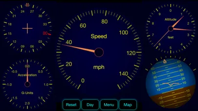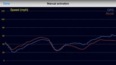 * Please note that if your phone is not positioned in the car with the long edge perpendicular to the direction of travel, or if you don't set the phone by pressing the Reset button, the accelerometer based speed trace is unlikely to match the GPS speed. The Auto-level feature built into the app will attempt to correct for any mismatch but it will work far more effectively if the phone is positioned correctly. Testing on this and other IDR devices has also shown that the GPS speed trace tends to lag the actual speed of the vehicle by about 0.5 to 1.0 seconds.