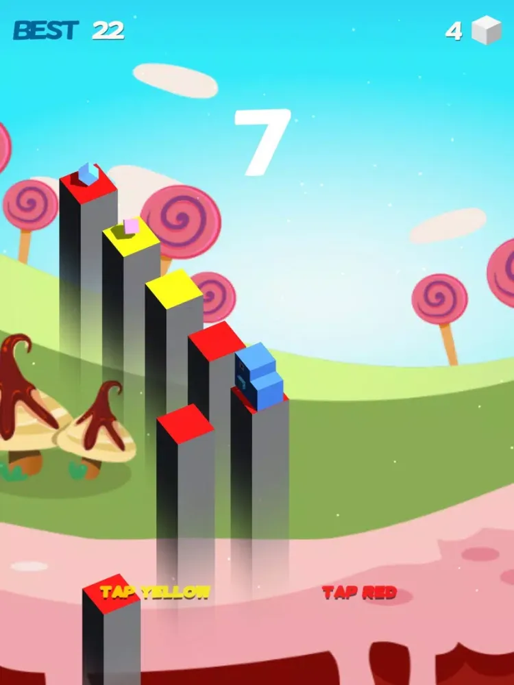 Help your cube travel through a world of changing colors! Tap to make your cube jump on the correctly colored platform to avoid falling to your doom. How far can you jump?