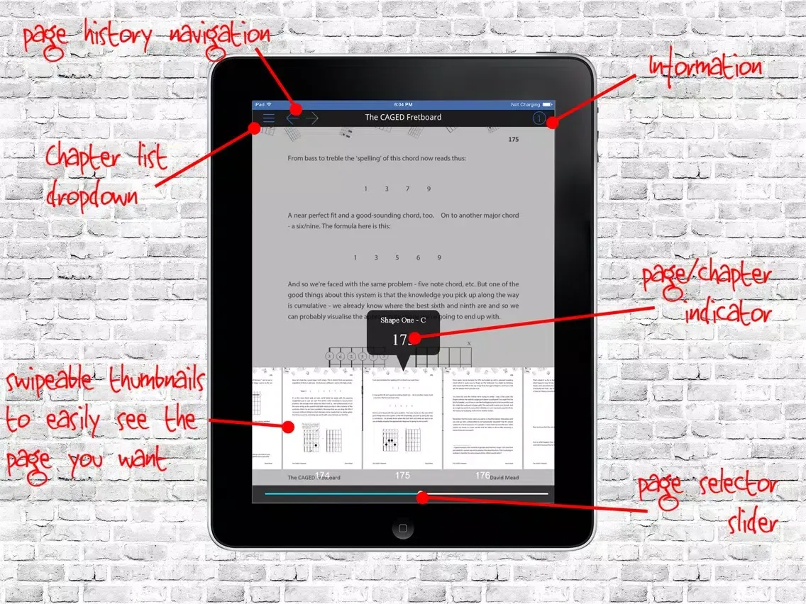 In this app, I set out the CAGED System for learning chords using progressive diagrams and clear explanatory text that will help you discover more about how music works in a shorter time than you thought possible.