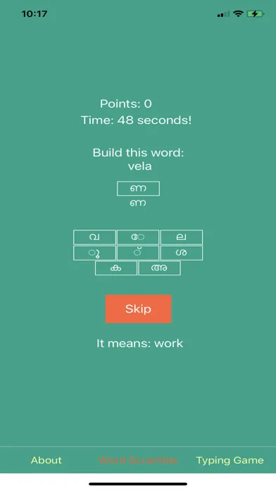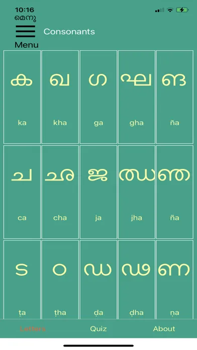 Malayalam is a Dravidian language spoken in southern India, primarily in the state of Kerala. It has an alphasyllabary script, typical of languages of India. The language had roughly 35 million native speakers by 2011. This app is designed to help you become comfortable with recognizing more and more complex letter forms until you can read and construct full-words. Start first by studying the vowels, practicing writing them down and then trying the quiz. Then try the quiz with the diacritics. Then, move on to consonants. This may take more time, as there are many consonants. Then, try the quiz with the consonant-vowel ligatures. Finally, try the quiz with the conjunct consonants. The word scramble game lets you try putting full words together. You can also try the typing game if you have a Malayalam keyboard installed on your phone.