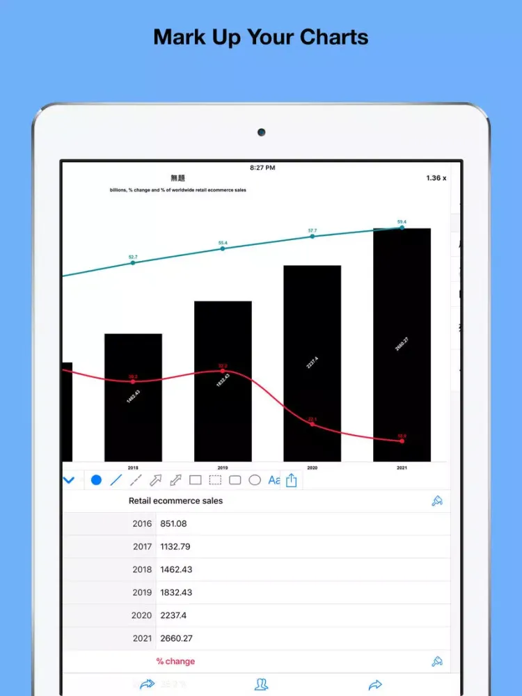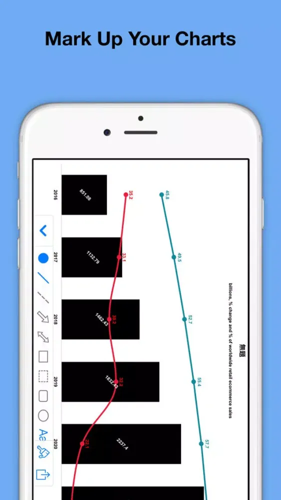 • Mark Up Your Charts: Mark up your chart with line, dash line, rect, ellipse, arrow, text, and images. if you made mistake, just double tap to delete it.