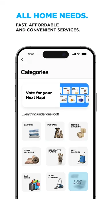 Take care of your home with Egypts new on-demand home services app! Introducing Hapi, your ultimate lifestyle companion! Say goodbye to the hassle of managing multiple chores with just a few taps on your phone. A Hapi is an easy to use app that offers laundry, packing and moving, pet grooming, decorative plants and other specialized services.