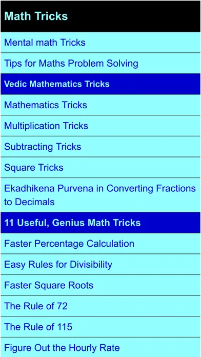 This App is designed for those who want to learn mathematical tricks to speed up the calculation.