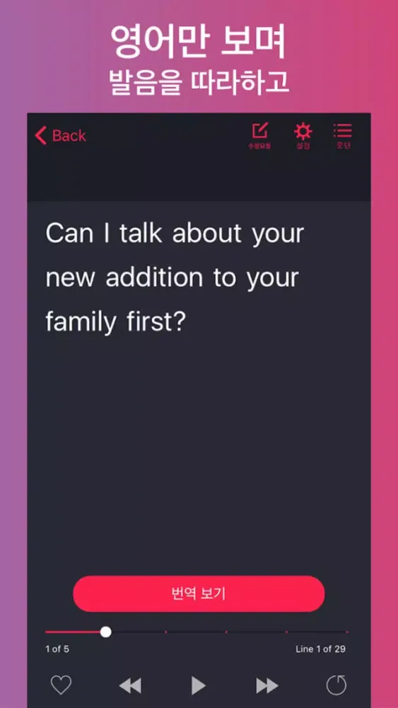 2. 한 문장씩 원음, 성우 발음 듣고 따라하기