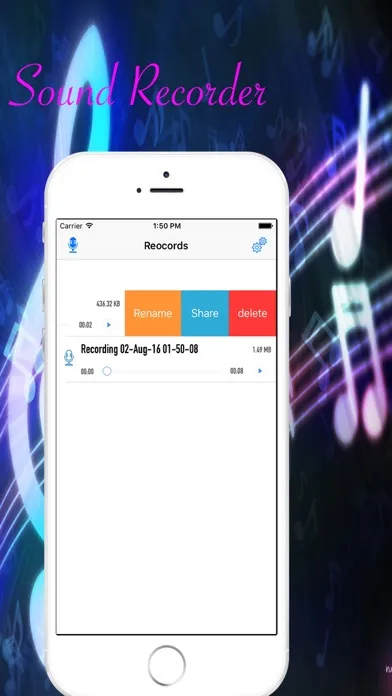 The interface is designed to be simple and quick.The application allow you to rename, delete, and share the sound clip with single tap.