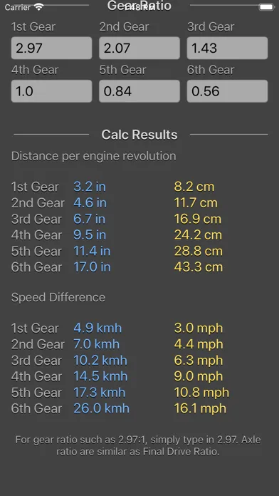 Note that you will get unreal speeds for overdrive gears. This is because in reality top speed is physically limited by it power or by aerodynamic drag.