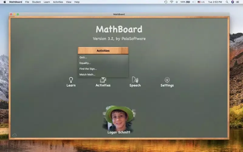- Multiple student profiles are supported. Includes the ability to save, review, and share the results for activities and quizzes with others.