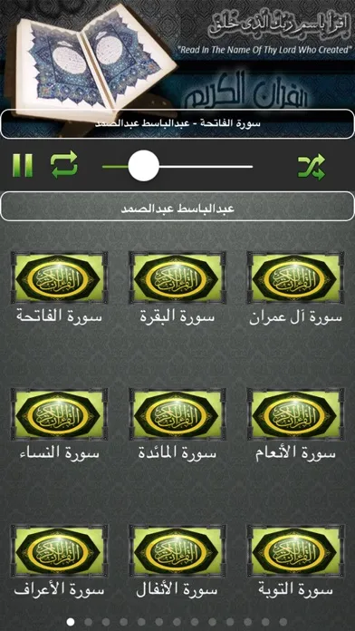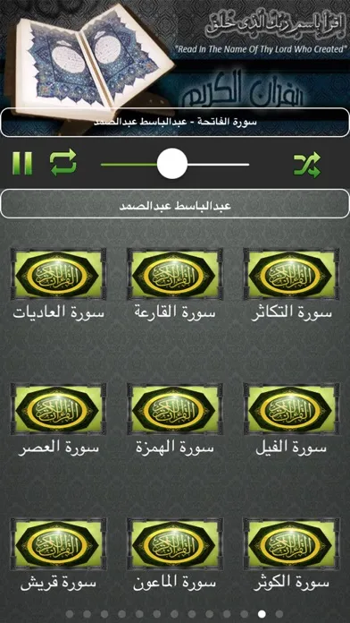 يدعم خاصية تكرار السورة والانتقال التلقائي للسورة التالية
