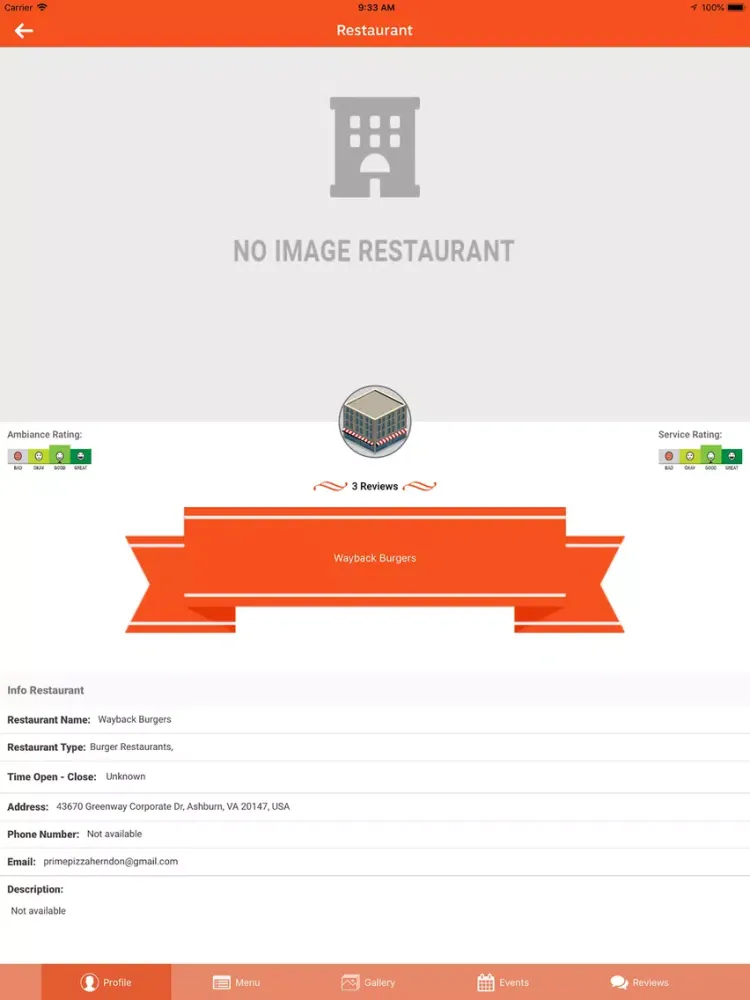 *Restaurant Information: To know more about a restaurant, simply move to the restaurant tab and click on the restaurant that you want to view. You will be able to find valuable information such as the ambiance rating and service rating before you make your final decision.