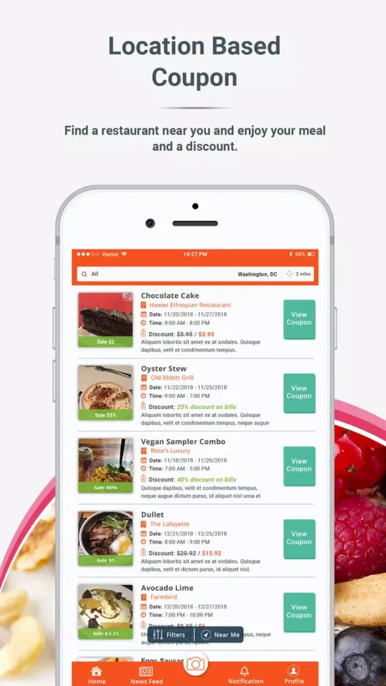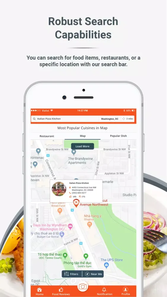 *Robust Search Capabilities - You can search for food items, restaurants, or a specific location with our search bar. This will show you a list of restaurants that are located within a 5-mile radius.