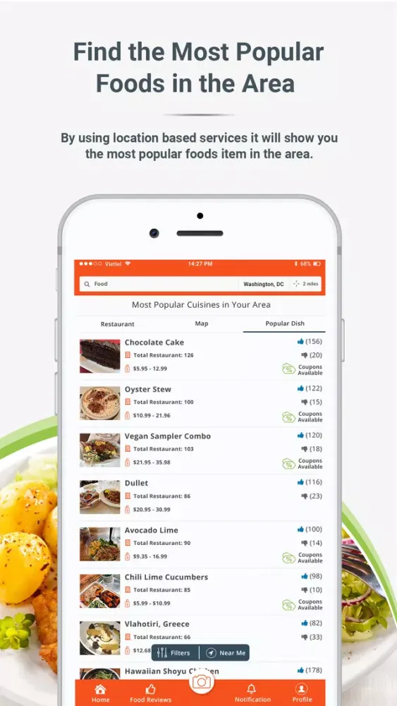 *Find the Most Popular Foods in the Area - The most unique and helpful feature of Tastefinder is the popular food section. By using location based services it will show you the most popular foods item in the area. You can sort the findings by the number of reviews per food item or the highest rating to see the desired results. Over time by using this data, we can determine your preferences and make individualized food recommendations.